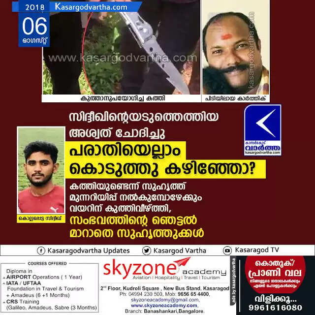 സിദ്ദീഖിന്റെയടുത്തെത്തിയ അശ്വത് ചോദിച്ചു; പരാതിയെല്ലാം കൊടുത്തു കഴിഞ്ഞോ? കത്തിയുണ്ടെന്ന് സുഹൃത്ത് മുന്നറിയിപ്പ് നല്‍കുമ്പോഴേക്കും വയറിന് കുത്തിവീഴ്ത്തി, സംഭവത്തിന്റെ ഞെട്ടല്‍ മാറാതെ സുഹൃത്തുക്കള്‍