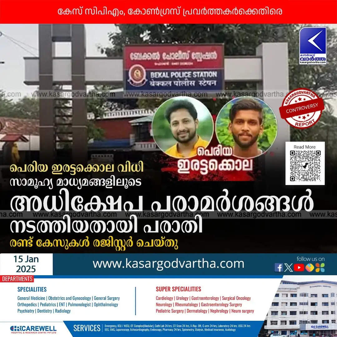 Controversy | പെരിയ ഇരട്ടക്കൊല വിധി: സാമൂഹ്യ മാധ്യമങ്ങളിലൂടെ അധിക്ഷേപ പരാമര്ശങ്ങള് നടത്തിയതായി പരാതി; രണ്ട് കേസുകള് രജിസ്റ്റര് ചെയ്തു