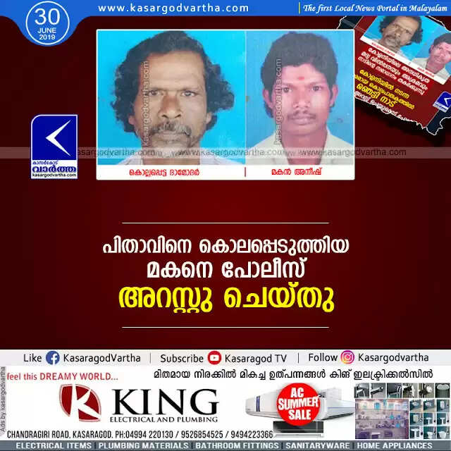 Keywords: Kasaragod, Kerala, news, chittarikkal, Top-Headlines, arrest, Police, Murder, Crime, Murder-case, Son arrested for killing father