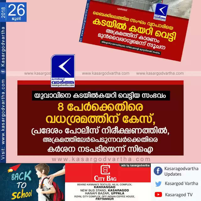 ബൈക്കിലെത്തിയ സംഘം വ്യാപാരിയെ കടയില് കയറി വെട്ടി; അക്രമത്തിന് കാരണം മുന്വൈരാഗ്യമെന്ന് സൂചന