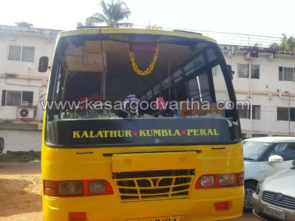 കാസര്കോട് എരിയാല് പാലത്തിനു സമീപം വെച്ച് കാസര്കോട് നിന്നും കുമ്പള ഭാഗത്തേക്ക് പോവുകയായിരുന്ന സ്വകാര്യ ബസിനു നേരെയാണ് കല്ലേറുണ്ടായത്. കല്ലേറില് ബസിന്റെ ഗ്ലാസ് തകര്ന്നു. 15,000 രൂപയുടെ നഷ്ടം സംഭവിച്ചു. ബസ് ഡ്രൈവര് കളത്തൂര് ഹലൈമന ഹൗസില് റുദേഷിനാണ് (25) കണ്ണിന് സാരമായി പരിക്കേറ്റത്. ഇയാള് ചികിത്സയിലാണ്. സംഭവത്തില് 308 വകുപ്പ് പ്രകാരം നരഹത്യാശ്രമത്തിനാണ് പോലീസ് കേസെടുത്തത്.