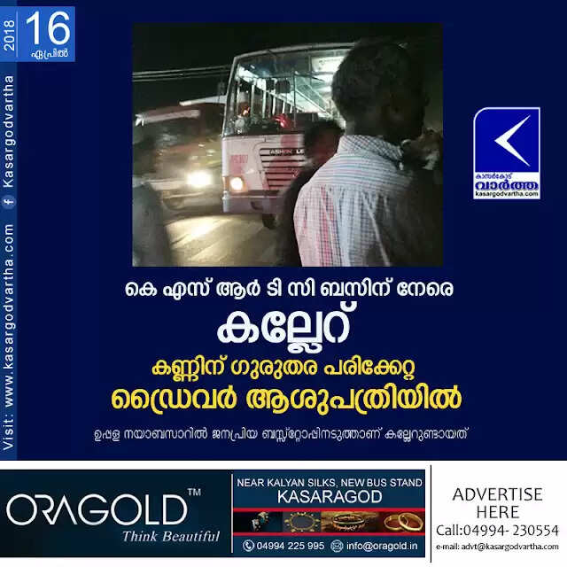 Keywords: Kerala, Kasaragod, News, KSRTC, Stone pelting, Crime, Bus-driver, Injured, Uppala, Stone Pelting Against KSRTC Bus