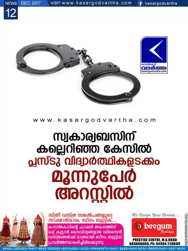 Keywords: Kasaragod, Kerala, News, Kumbala, Stone pelting, Arrest, Police, Court, Driver, Complaint, Case, Stone pelting case; 3 arrested.