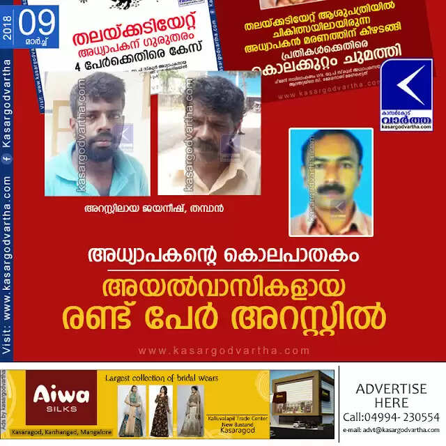 Keywords: Cheemeni, Murder, Arrest, Crime, Kasaragod, Kerala, news, Police, Teacher murder case; 2 Neighbors arrested.