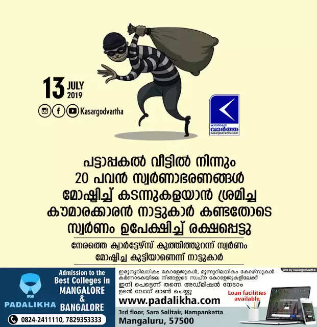 Keywords:  Kasaragod, Kerala, news, Top-Headlines, Robbery, Crime, Natives, Teenager attempt to rob Gold from House