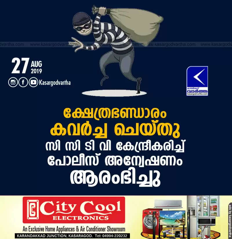 ക്ഷേത്രഭണ്ഡാരം കവര്‍ച്ച ചെയ്തു; സി സി ടി വി കേന്ദ്രീകരിച്ച് പോലീസ് അന്വേഷണം ആരംഭിച്ചു