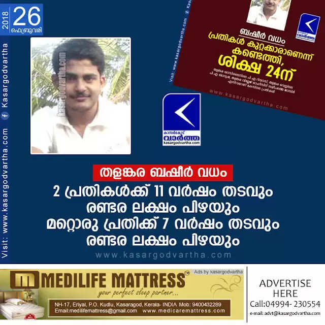 Keywords: Kasaragod, Kerala, News, Crime, Murder-case, Accuse, Court, Fine, Thalangara Basheer murder; Accused Punished.