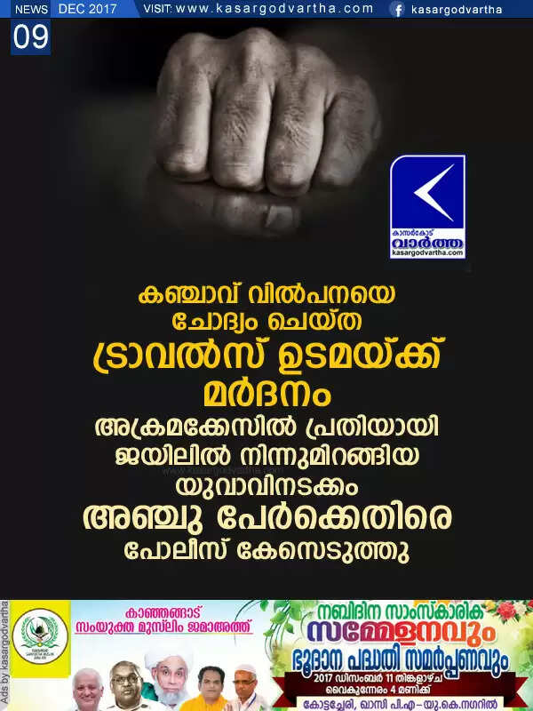 Keywords: Kasaragod, Kerala, news, Attack, Assault, Police, Investigation, Crime, Ganja, case, Travel owner assaulted for questioning ganja sale; Complaint lodged