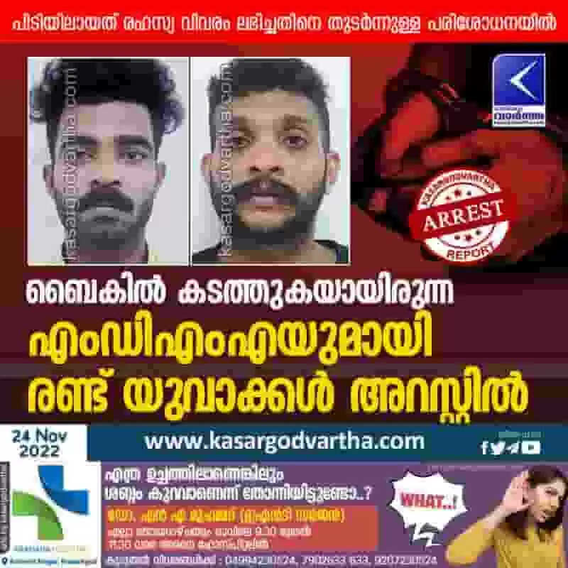 Arrested | ബൈകില് കടത്തുകയായിരുന്ന എംഡിഎംഎയുമായി രണ്ട് യുവാക്കള് അറസ്റ്റില്