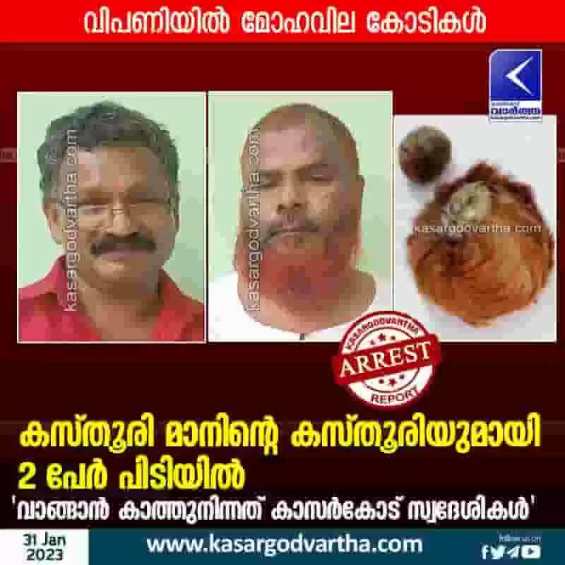 Seized | കസ്തൂരി മാനിന്റെ കസ്തൂരിയുമായി 2 പേര്‍ പിടിയില്‍; വിപണിയില്‍ മോഹവില കോടികള്‍; 'വാങ്ങാന്‍ കാത്തുനിന്നത് കാസര്‍കോട് സ്വദേശികള്‍'
