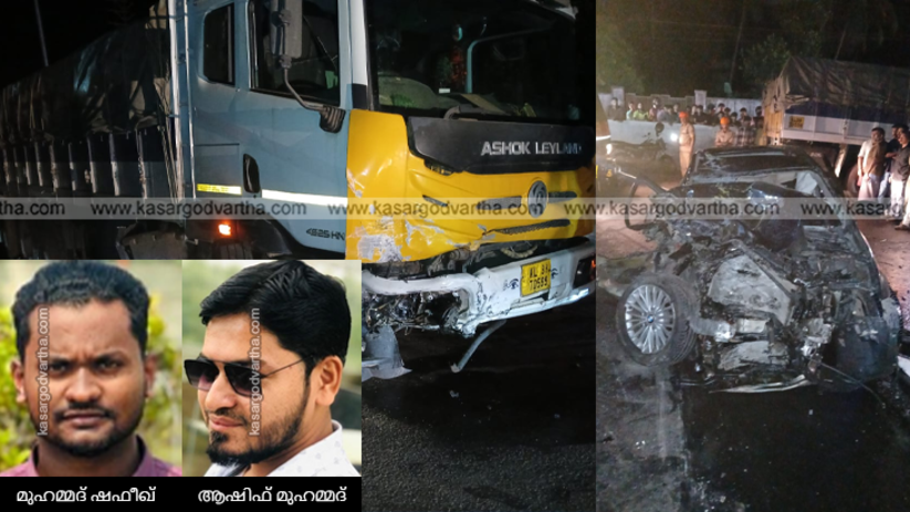 ചട്ടഞ്ചാൽ 55-ാം മൈൽ ദേശീയ പാതയിൽ ബിഎംഡബ്ല്യൂ കാറും ലോറിയും കൂട്ടിയിടിച്ച് വൻ അപകടം; കർണാടക സ്വദേശികളായ രണ്ട് യുവാക്കൾക്ക് ദാരുണാന്ത്യം