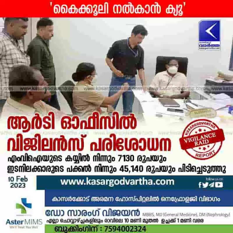 Keywords: Latest-News, Kerala, Kasaragod, Top-Headlines, RTO, Vigilance-Raid, Vigilance, Crime, Vellarikundu, Investigation, Vellarikundu: Vigilance raid at RT office. < !- START disable copy paste -->