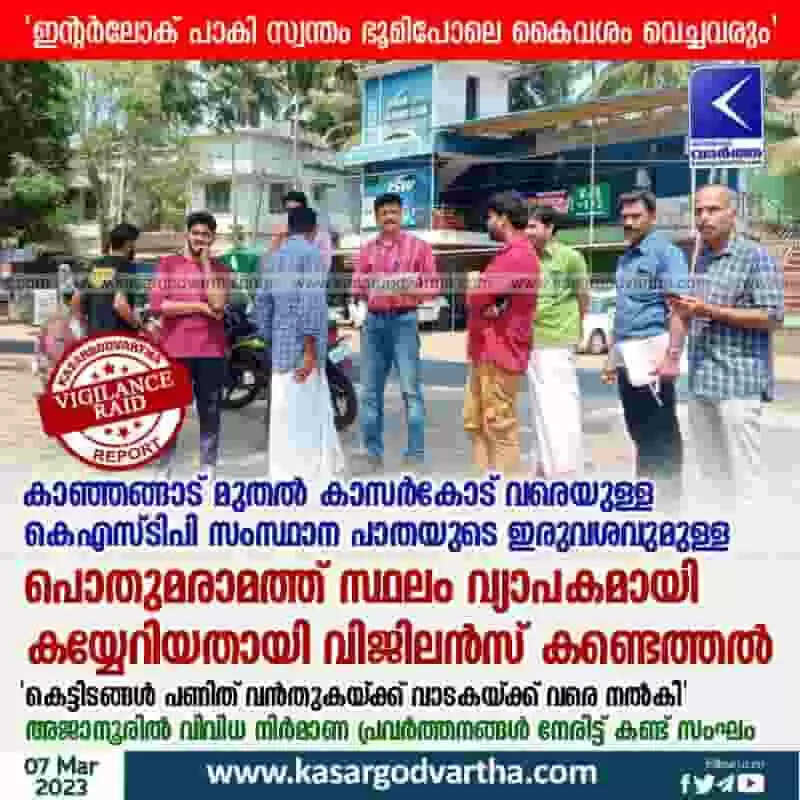 Keywords: Latest-News, Kerala, Kasaragod, Kanhangad, Top-Headlines, Vigilance-Raid, Vigilance, Crime, Raid, Investigation, Road-Side, Road, KSTP Highway, Vigilance found widespread encroachment of public works site on both sides of KSTP highway.