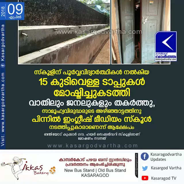 Keywords: Kasaragod, Kerala, News, Uppala, School, Robbery, Anti-social, Government school, Water taps robbed from School
