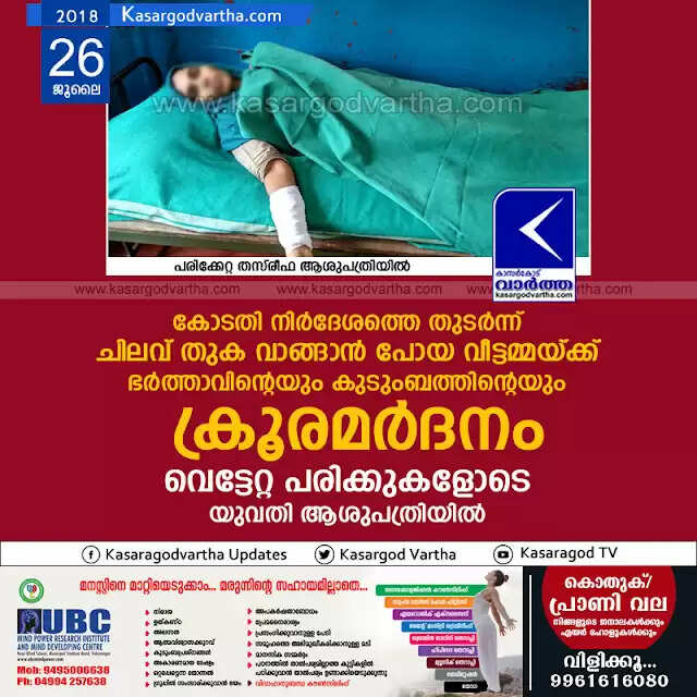 Keywords: Kasaragod, Kerala, news, Kumbala, Youth, hospital, Injured, Crime, Top-Headlines, Woman assaulted by Husband and family