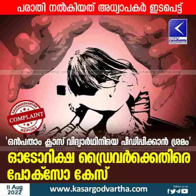 Police Booked | 'ഒന്പതാം ക്ലാസ് വിദ്യാര്ഥിനിയെ പീഡിപ്പിക്കാന് ശ്രമം'; ഓടോറിക്ഷ ഡ്രൈവര്ക്കെതിരെ പോക്സോ കേസ്