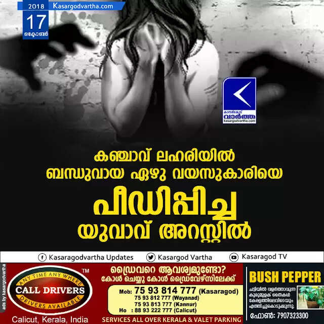 കഞ്ചാവ് ലഹരിയില് ബന്ധുവായ ഏഴു വയസുകാരിയെ പീഡിപ്പിച്ച യുവാവ് അറസ്റ്റില്