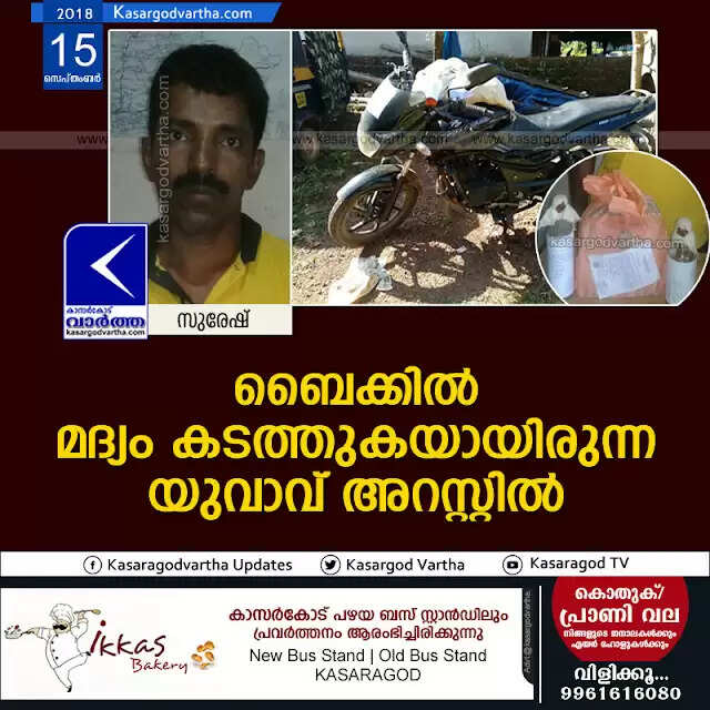 Keywords:  Kerala, News, Badiyadukka, Youth, Arrest, Bike, Liquor, Police, Crime, Youth arrested with liquor.