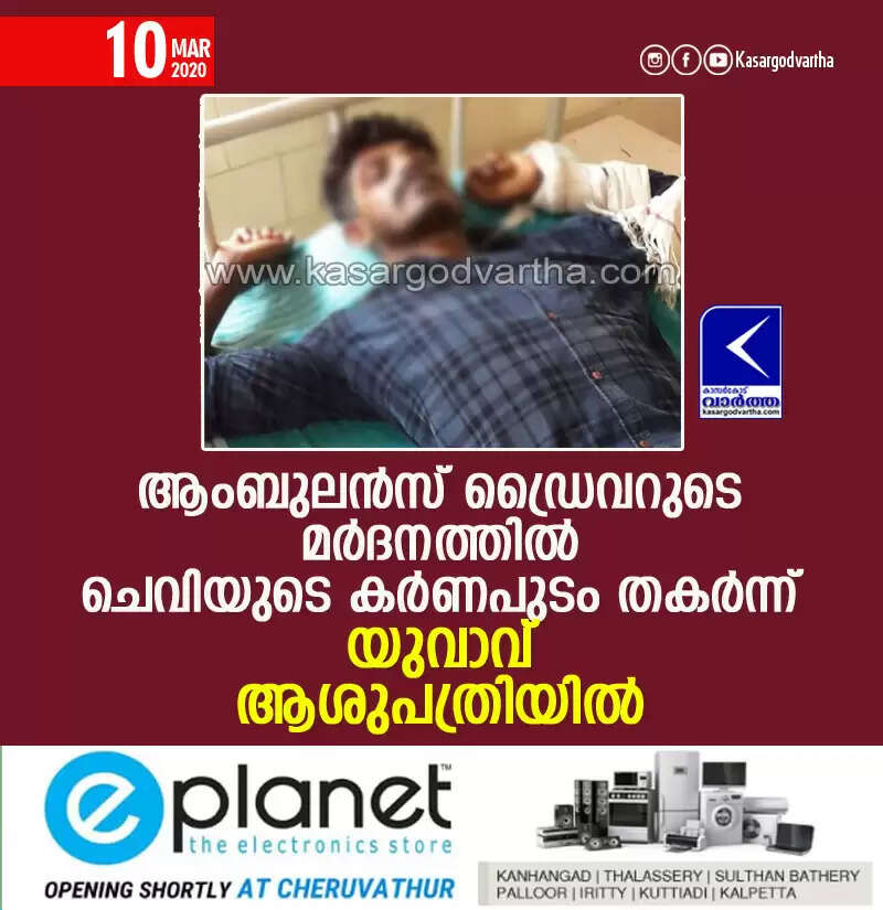 ആംബുലന്‍സ് ഡ്രൈവറുടെ മര്‍ദനത്തില്‍ ചെവിയുടെ കര്‍ണപുടം തകര്‍ന്ന് യുവാവ് ആശുപത്രിയില്‍