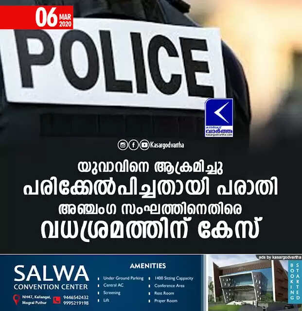 Keywords: Kasaragod, Kerala, news, Assault, Attack, Crime, Thalangara, case, Youth attacked; Case against 5
