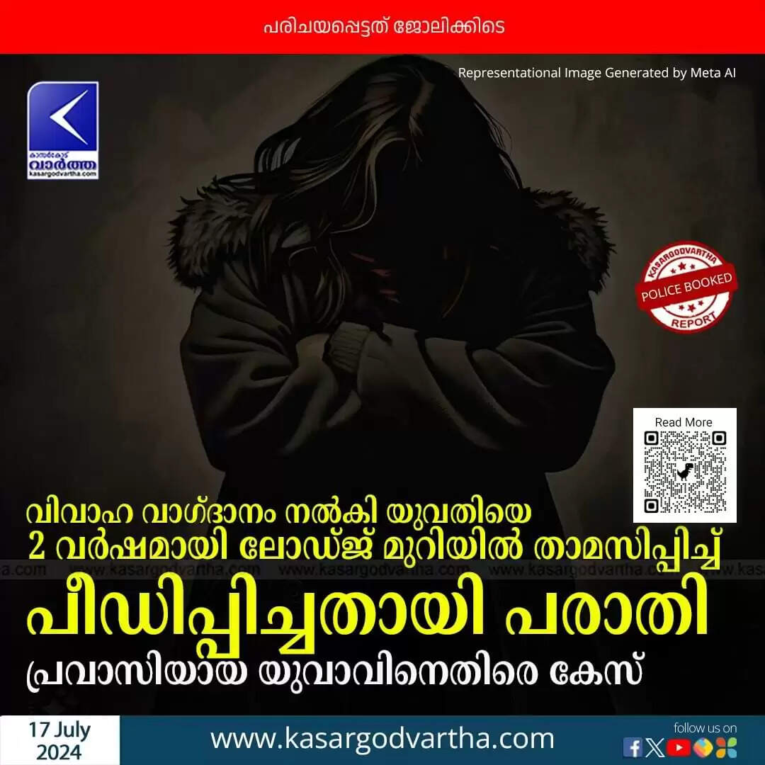 Police Booked | വിവാഹ വാഗ്ദാനം നൽകി യുവതിയെ 2 വർഷമായി ലോഡ്ജ് മുറിയിൽ താമസിപ്പിച്ച് പീഡിപ്പിച്ചതായി പരാതി; പ്രവാസിയായ യുവാവിനെതിരെ കേസ്