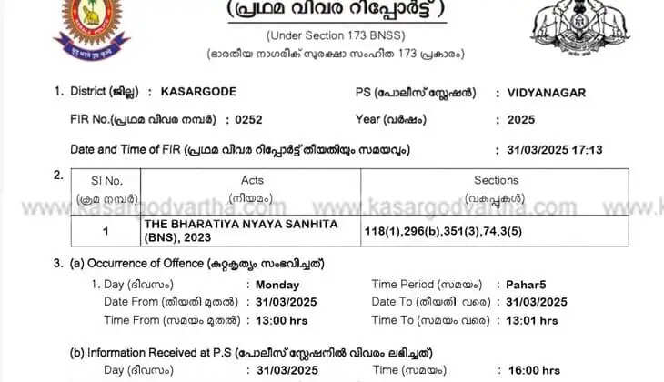 ● വിദ്യാനഗര് പോലീസാണ് കേസെടുത്തത്.