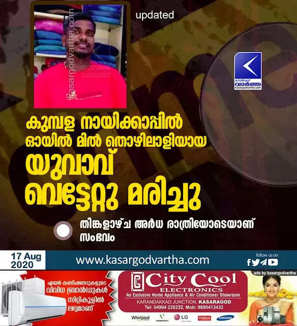 കുമ്പള നായിക്കാപ്പില്‍ ഓയില്‍ മില്‍ തൊഴിലാളിയായ യുവാവ് വെട്ടേറ്റു മരിച്ചു