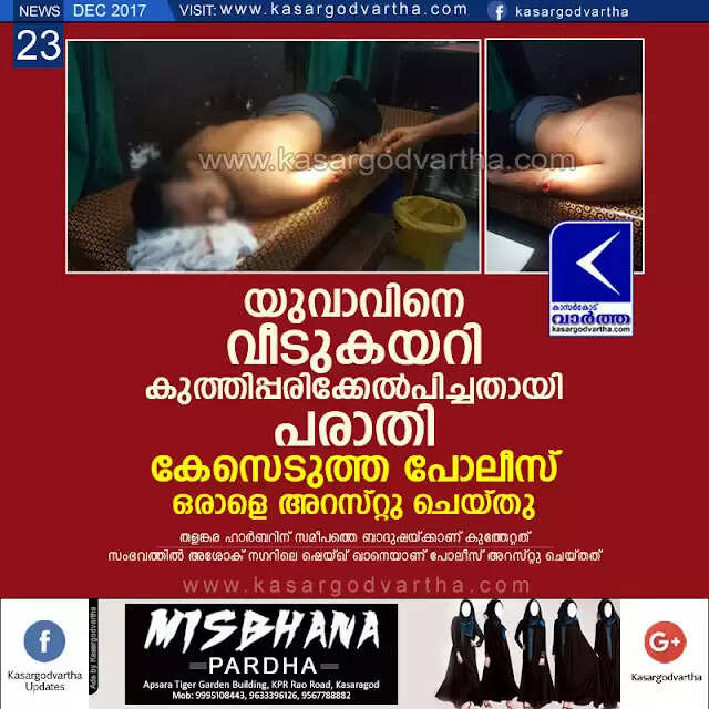 Keywords:  Kasaragod, Kerala, news, case, Police, complaint, Youth, Attack, Crime, youth Stabbed; one arrested