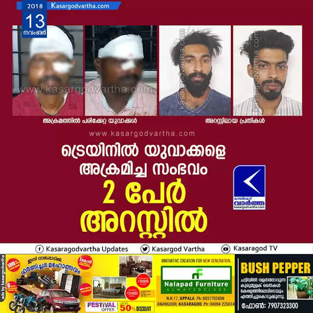 Keywords:  Kasaragod, Kerala, news, arrest, Police, Crime, Assault, Attack, Kanhangad, Youths Attacked in Train; 2 arrested