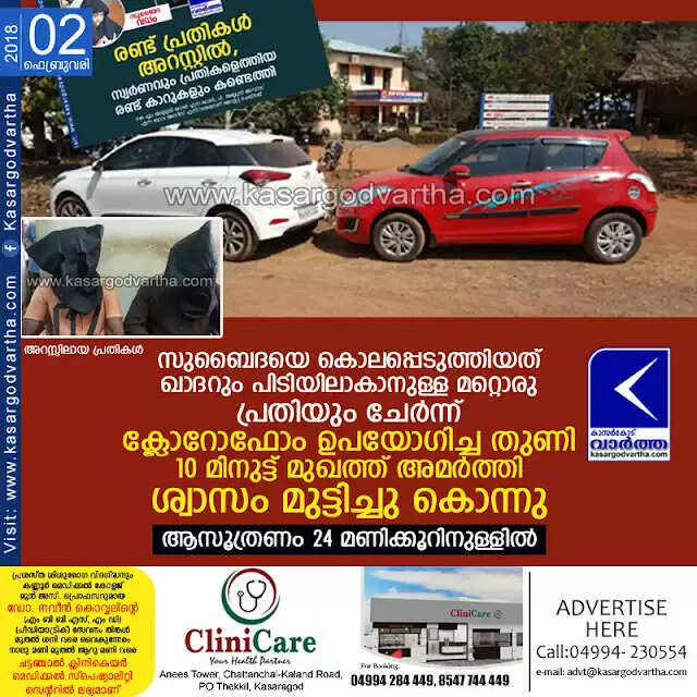 Keywords: Kasaragod, Kerala, news, Murder-case, Crime, Police, arrest, Car, Top-Headlines, Zubaida murder case; Accused planned the crime in an hour.