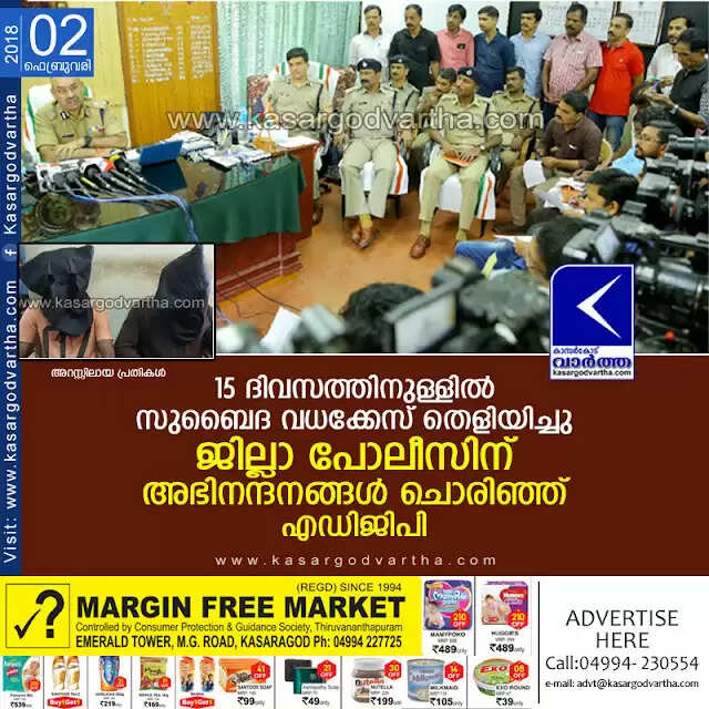 സുബൈദ വധക്കേസില്‍ പ്രതികളുടെ അറസ്റ്റ് വെള്ളിയാഴ്ചയുണ്ടാകുമെന്ന് ജില്ലാ പോലീസ് ചീഫ്; പോലീസ് അന്വേഷിക്കുന്ന പ്രതിക്ക് ദേവകി വധക്കേസുമായും ബന്ധം?