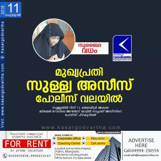 സുബൈദ വധക്കേസിലെ മുഖ്യപ്രതി സുള്ള്യ അസീസ് പോലീസ് വലയില്