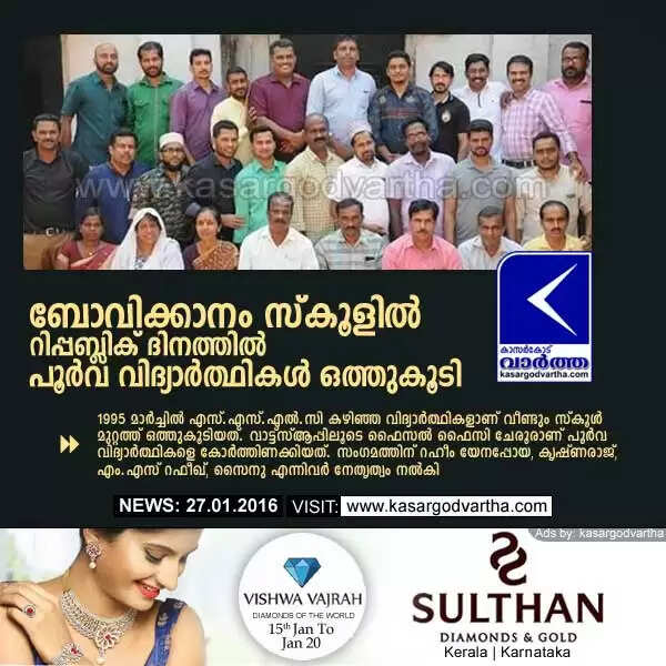 ബോവിക്കാനം സ്‌കൂളില്‍ റിപ്പബ്ലിക് ദിനത്തില്‍ പൂര്‍വ വിദ്യാര്‍ത്ഥികള്‍ ഒത്തുകൂടി