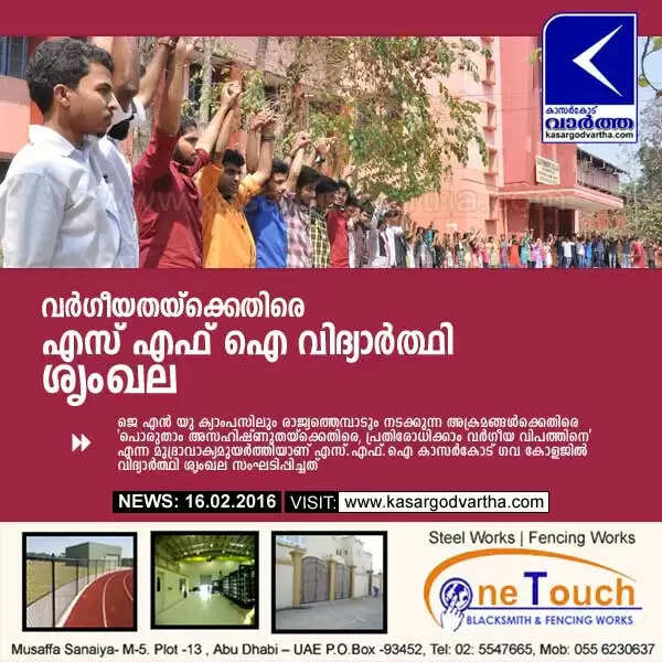 വര്ഗീയതയ്ക്കെതിരെ എസ് എഫ് ഐ വിദ്യാര്ത്ഥി ശൃംഖല