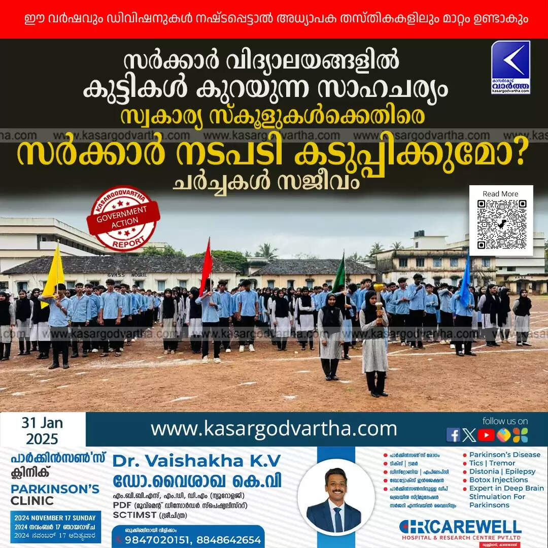 Government schools in Kerala face declining student enrollment, while discussions around stricter government actions against private schools continue to grow.