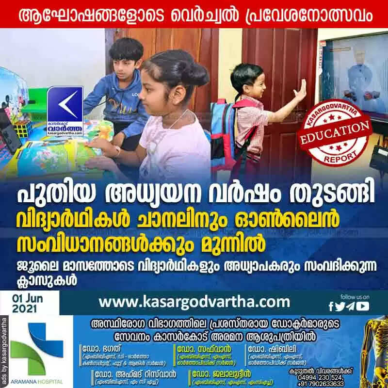 കാസർകോട്: (www.kasargodvartha.com 01.06.2021) സംസ്ഥാനത്തെ സ്കൂളുകളിൽ പുതിയ അധ്യയന വർഷത്തിന് ചൊവ്വാഴ്ച തുടക്കമായി. കോവിഡ് പശ്ചാത്തലത്തിൽ വിക്ടേഴ്സ് ചാനൽ വഴിയും ഓൺലൈൻ സംവിധാനങ്ങൾ വഴിയും ഡിജിറ്റൽ വിദ്യാഭ്യാസമാണ് ഇത്തവണയും തൽക്കാലം ലഭിക്കുക.
