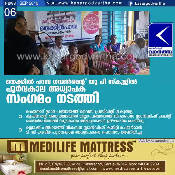 തെക്കില് പറമ്പ ഗവണ്മെന്റ് യു പി സ്കൂളില് പൂര്വകാല അധ്യാപക സംഗമം നടത്തി