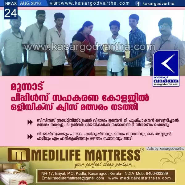 മുന്നാട് പീപ്പിള്സ് സഹകരണ കോളജില് ഒളിമ്പിക്സ് ക്വിസ് മത്സരം നടത്തി