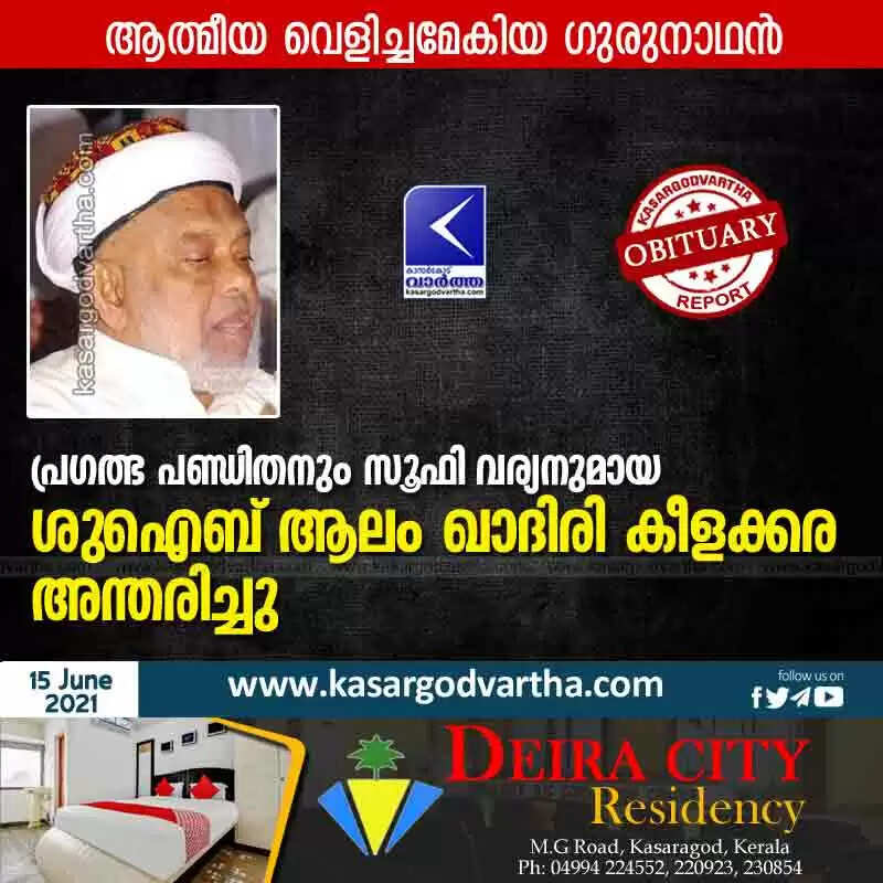 പ്രഗത്ഭ പണ്ഡിതനും സൂഫി വര്യനുമായ ശുഐബ് ആലം ഖാദിരി കീളക്കര അന്തരിച്ചു