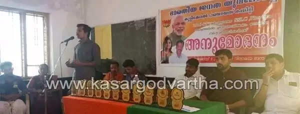 യുവമോര്ച്ച പഞ്ചായത്ത് വൈസ് പ്രസിഡന്റ് പി ആര് രാഹുല് അധ്യക്ഷത വഹിച്ചു. യുവമോര്ച്ച ഉദുമ മണ്ഡലം പ്രസിഡന്റ് പ്രദീപ് എം കൂട്ടക്കനി, ജനറല് സെക്രട്ടറി ദിലീപ് പള്ളഞ്ചി, സെക്രട്ടറി മഹേഷ് ഗോപാല്, ബി ജെ പി കുറ്റിക്കോല് പഞ്ചായത്ത് പ്രസിഡന്റ് രാധാകൃഷ്ണന് നമ്പ്യാര്, വൈസ് പ്രസിഡന്റ് പ്രീതം കുമാര് റായി, കുറ്റിക്കോല് ഗ്രാമപഞ്ചായത്ത് വൈസ് പ്രസിഡന്റ് ദാമേദരന്, പഞ്ചായത്ത് അംഗം രജ്ഞിനി തുടങ്ങിയവര് സംസാരിച്ചു.