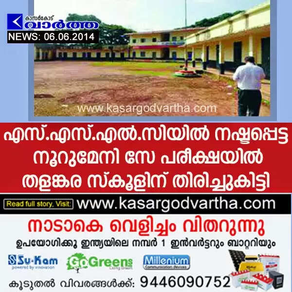 എസ്.എസ്.എല്.സിയില് നഷ്ടപ്പെട്ട നൂറുമേനി സേ പരീക്ഷയില് തളങ്കര സ്കൂളിന് തിരിച്ചുകിട്ടി