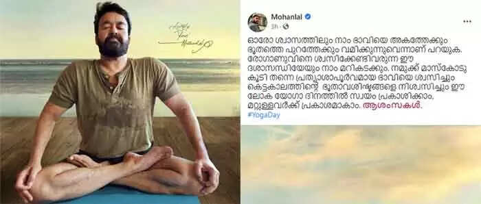 ഈ ലോക യോഗാ ദിനത്തില് സ്വയം പ്രകാശിക്കാം, മറ്റുള്ളവര്ക്ക് പ്രകാശമാകാം: മോഹന്ലാല്
