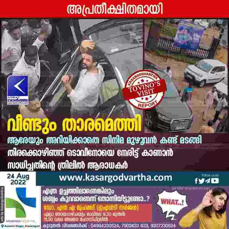 Keywords: Kasaragod, Kerala, News, Top-Headlines, Cinema, Theater, Film, Actor, Celebration, Entertainment, Actor Tovino Thomas arrived at theater to watch his own film.