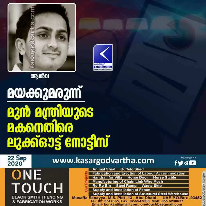 മയക്കുമരുന്ന്: മുന്‍ മന്ത്രിയുടെ മകനെതിരെ ലുക്ക്ഔട്ട് നോട്ടീസ്