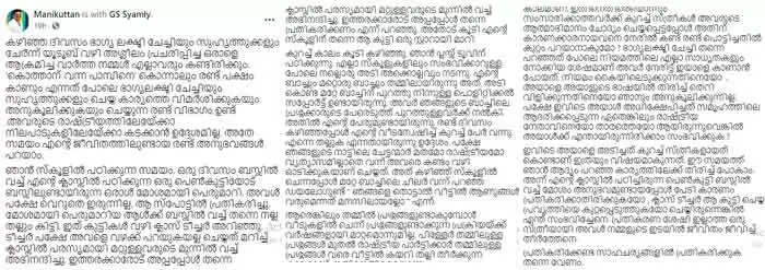മണിക്കുട്ടന്റെ ഫെയ്സ്ബുക്ക് കുറിപ്പിന്റെ പൂര്ണരൂപം