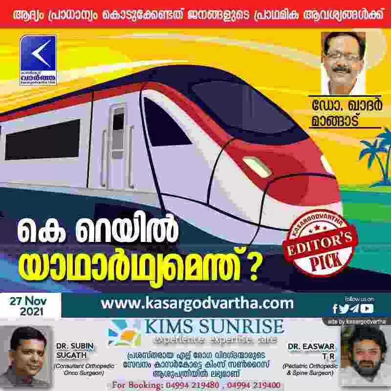 Keywords: News, Kerala, Kasaragod, Article, Railway, Train, Hospital, Cinema, Government, Political party, Kannur, Thiruvananthapuram, Medical College, K Rail; What is reality?.