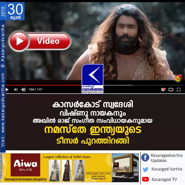 Keywords: kasaragod, Kerala, Cinema, Video, Release, Film, Vishnu, Namaste India, Teaser, Youtube, Namaste India teaser released