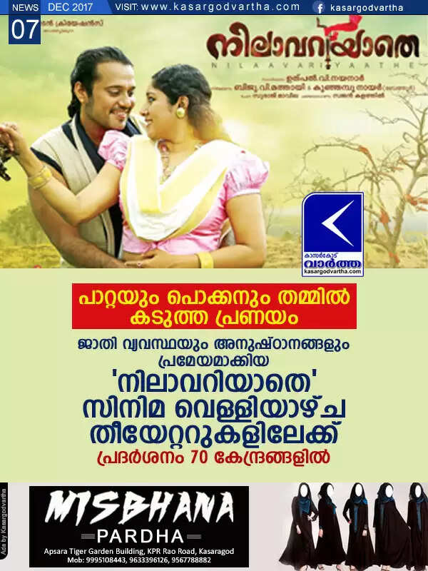 Keywords: Kasaragod, Press meet, Kerala, Cinema, Love, Theater, Bala, Nilavariyathe movie release on friday.