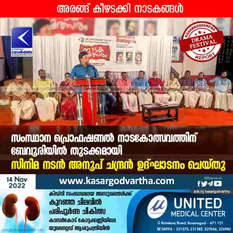 Keywords: State Professional Drama Festival begins in Bevoori, Kerala, Uduma, Kasaragod, news, Top-Headlines, Cinema, Actor, Nileshwaram.