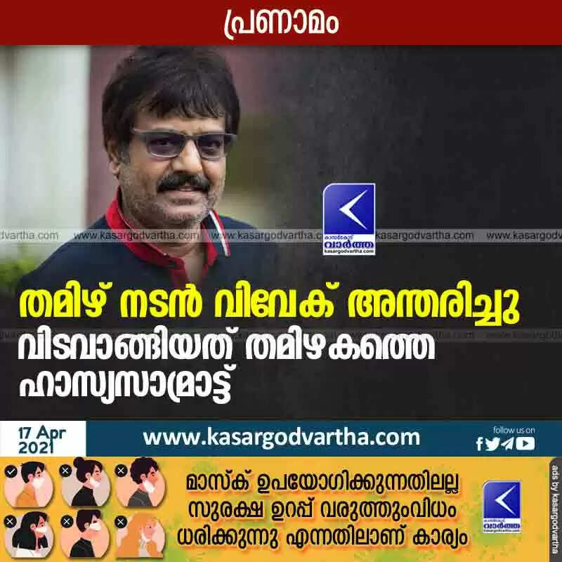 തമിഴ് നടന്‍ വിവേക് അന്തരിച്ചു; വിടവാങ്ങിയത് തമിഴകത്തെ ഹാസ്യസാമ്രാട്ട്